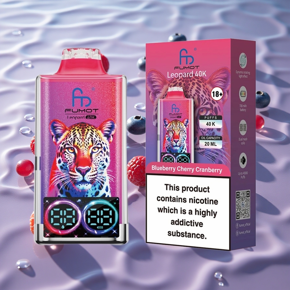 Fumot Leopard 40K Puffs Engangs E-sigarett Blåbær Kirsebær Tranebær med Type-C Lading