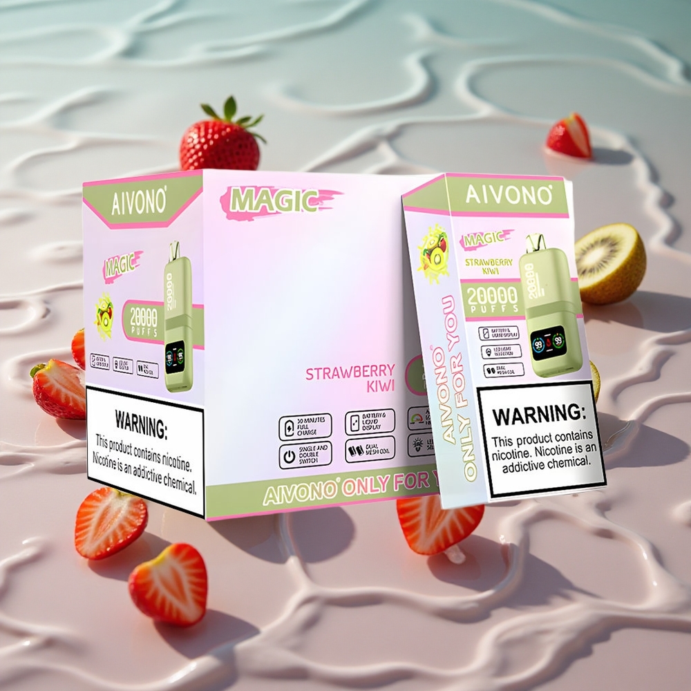 Aivono AIM MAGIC 20000 Puffs Opplagbar Vape jordbær kiwi med LCD-skjerm og Type-C-lading